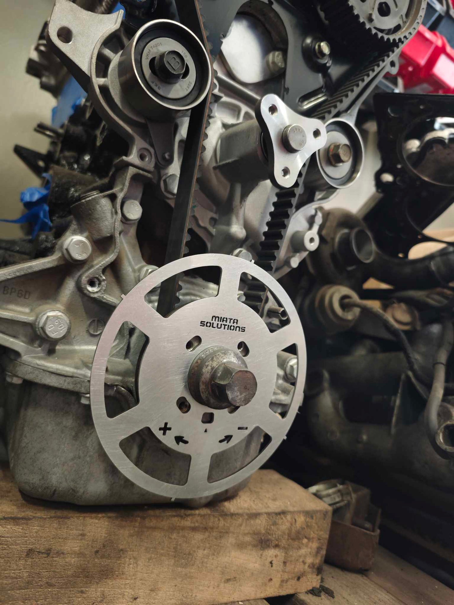 Our 36-1 trigger wheel is a direct replacement for the factory signal wheel. All you need to do to install it is remove the accessory belts, undo the four bolts, take off the crank pulley, and swap the OEM wheel with our trigger.