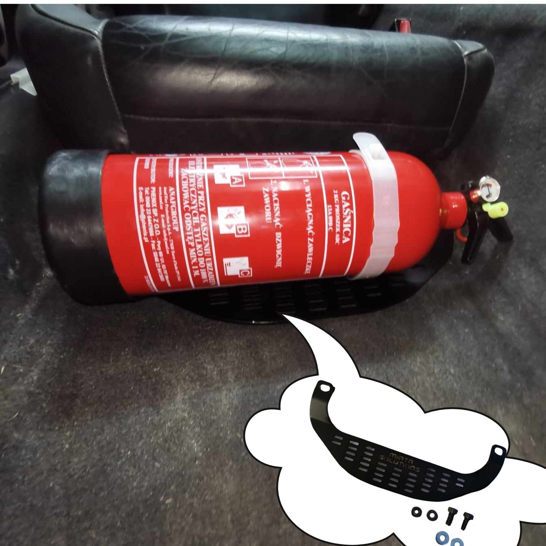 The kit fits plug and play to the passenger seat mount and allows you to attach virtually any fire extinguisher bracket available on the market.