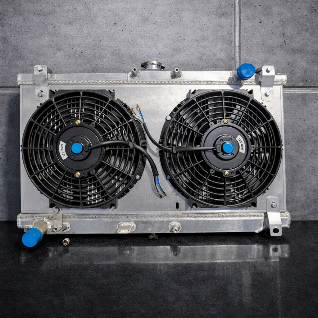 Thanks to the adjustable mounts, even if there were any imperfections in the manufacturing process of the aluminum radiators, the shrouds can still be easily bolted into the correct position.